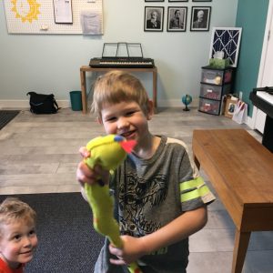 This pre-keyboard program is designed for youngsters! It helps them to develop their listening, fine motor skills, attention, and social skills, all in a group setting with puppets and fun instruments!